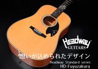 Headway Standard series HD-Fuyuzakuraは「冬桜」というテーマでギターをデザインしました。桜の木をボディのサイド・バックに使用し、真っ黒なエボニーをブリッジや指板に使用することで、これまでの桜モデルに比べて少し落ち着いた雰囲気があります。