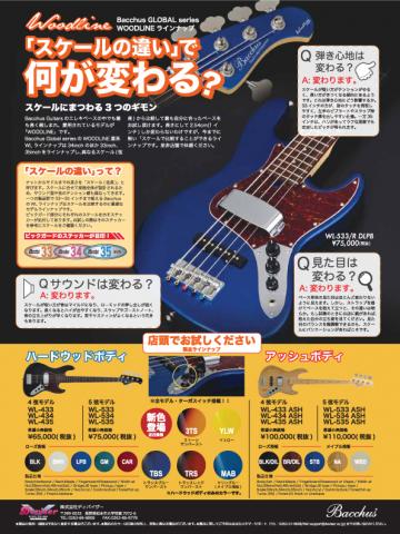 発売されたばかりのリットーミュージック刊ベースマガジン3月号にBacchusのエレキベースが掲載されております! バールメイプルをボディトップにした、見るからに個性的な1本です。 4弦、5弦にそれぞれパッシブ、アクティブをラインナップしています。 WOODLINE DX4 EWC/BM・・・限定12本制作 http://www.deviser.co.jp/bacchusguitars/basses/woodline-dx4-ewc-bm WOODLINE DX5 EWC/BM・・・限定8本制作 http://www.deviser.co.jp/bacchusguitars/basses/woodline-dx5-ewc-bm WOODLINE DX4AC EWC/BM・・・限定12本 http://www.deviser.co.jp/bacchusguitars/basses/woodline-dx4ac-ewc-bm WOODLINE DX5AC EWC/BM・・・限定8本制作 http://www.deviser.co.jp/bacchusguitars/basses/woodline-dx5ac-ewc-bm また、雑誌広告としてBacchus Global seriesのWLモデルを掲出! 店頭でベースのスケールを基準に試奏したことってありますか? 恐らくほとんどの方はそんなことしたことないのではないでしょうか。 スケールだけ異なり、それ以外の仕様が全て同じというベースは滅多にありません。 そもそもスケールの差「だけ」で比較するというのは一般的なベース試奏ではちょっとナンセンスかもしれません。 ただ、このWLモデルは全く同じ仕様のベースで33インチ、34インチ、35インチの3種類のスケールをご用意しています。 店頭でお見かけの際は、ぜひぜひスケールの差に集中してその違いを体験してみてください! 今後の楽器選びに何か参考になるような発見があるのではないでしょうか。 Bacchus Guitarsウェブサイト http://www.deviser.co.jp/bacchusguitars Burl Maple特集 http://www.deviser.co.jp/bacchusguitars/ewc-burlmaple 作成者:dev-admin 作成日:2017/2/18(土) 09:18