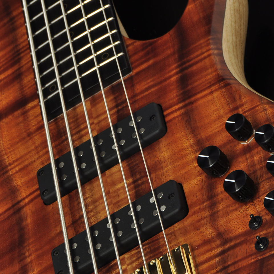 Master Volume, PU Blender, Tone(Pull-UP:Preamp OFF), Treble, Middle(Push-Pull=Mid Freq), Bass, PU Series/Parallel/Coil Tap Switch×2