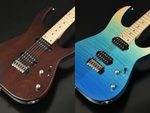 テックウッド指板モデルは、アッシュの木目を活かすオイルフィニッシュモデルで仕上げました。メイプル指板モデルは、木目が際立つバーナー処理を施したアッシュ材を採用。ナチュラルカラーとブラックバーストカラーの2色をラインナップしています。