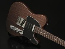トップにはバールポプラ、バックにはマホガニーを使用。ポジションマークにはアバロンを採用し、高級感のある外観へと仕上がりました。ネックはメイプルとローズウッドの5Pを採用し、引き締まったサウンドへと仕上げられています。バール杢を生かすクリアピックガードを採用しています。