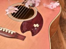 ヘッドからピックガードにかけて桜とパズルをモチーフとしたインレイデザインが華やかに彩ります。ボディカラーとマッチしたピンク色のパズルと桜のインレイが目を引くモデルに仕上がりました。また、ボディカラーはソメイヨシノの木肌の色合いを生かした「レッドサンバースト」を採用。華やかで美しい外観に仕上がりました。