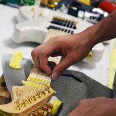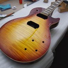 ボディトップにジャーマンスプルースを使用した特別モデル製作中。