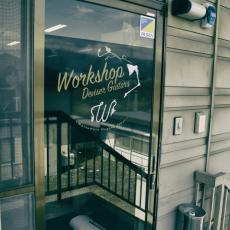 工房入り口のガラスにロゴの入ったウィンドウフィルムを貼りました◎