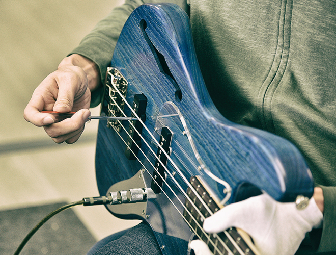 ピックアップの高さが適正でない場合、アンプから聞こえるサウンドに影響が出ます。高すぎても低すぎても悪い影響が出てしまいますので、影響が出ない範囲で調整を行います。