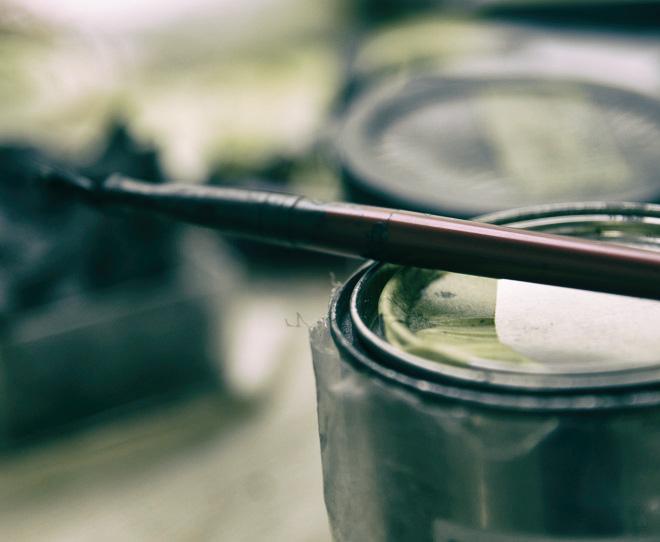 導電塗料は黒くドロッとした液体で、かなり多くの種類がありますが一般的なものでは主にカーボンが使われています。筆を使って丁寧に、キャビディ内部へ塗っていきます。