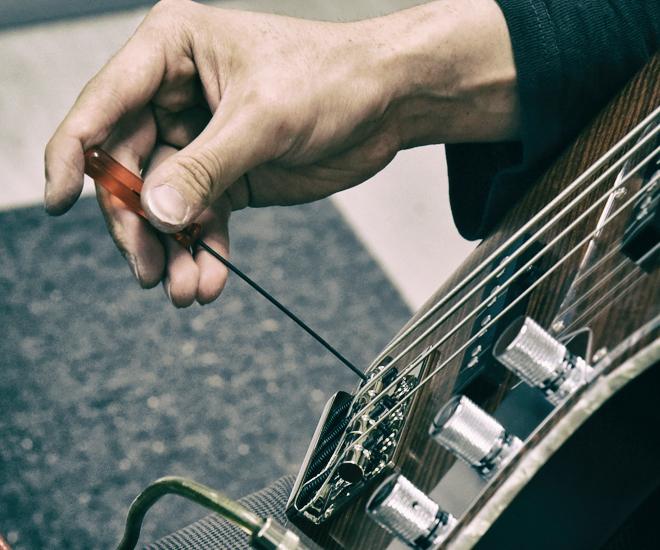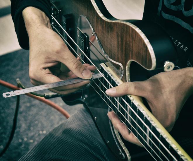 まずネックの反りを確認し調整してから、弦高調整を行います。